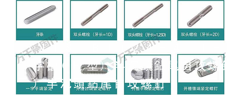 1)開槽普通螺釘多用于較小零件的連接。它有盤頭螺釘、圓柱頭螺釘、半沉頭螺釘和沉頭螺釘。盤頭螺釘和圓柱頭螺釘?shù)尼旑^強度較高,瑁在普通的部件連接上;半沉頭螺釘?shù)念^部呈弧形,安裝后它的頂端略外露,且美觀光滑,一般用