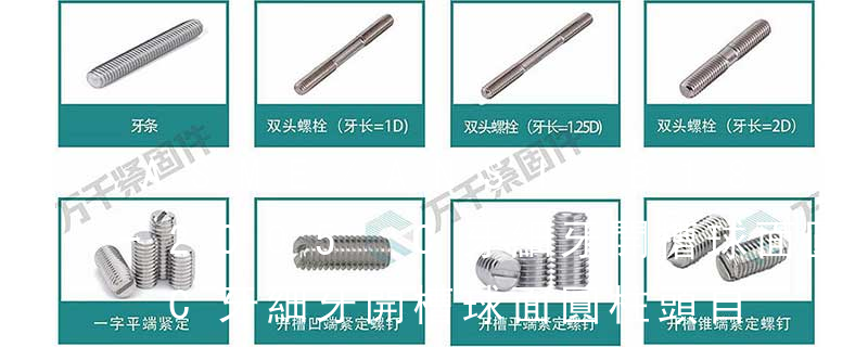 1)開槽普通螺釘多用于較小零件的連接。它有盤頭螺釘、圓柱頭螺釘、半沉頭螺釘和沉頭螺釘。盤頭螺釘和圓柱頭螺釘?shù)尼旑^強度較高,瑁在普通的部件連接上;半沉頭螺釘?shù)念^部呈弧形,安裝后它的頂端略外露,且美觀光滑,一般用