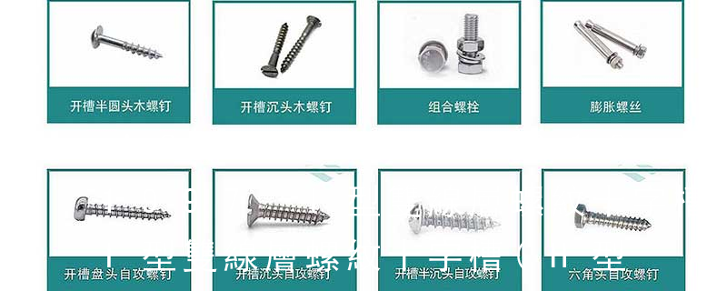 1、Flat:平頭 (鎖入后,頂部與工作件齊平)2、Oval:色拉頭、O頭、半沉頭 3、Round:圓頭 4、Pan:圓扁頭 5、Truss:大圓扁頭 6、Hex:六角頭 A-5:Finish Code/外觀處理。公制自攻螺絲 :于品名后方直接標示 Tapp 開槽圓柱頭螺釘 Slotted cheese head screws 開槽盤頭螺釘 Slotted pan head screws 單耳止動墊圈 Tab washers 開口銷 Split cooter pins 開槽半沉頭木螺釘 Slotted raised csk head wood screws 開槽半圓頭木螺釘 Slotted