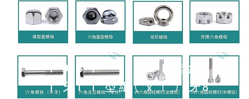B:球面圓柱頭; C:圓柱頭; F(K):沉頭; H:六角頭;HW:六角頭帶墊圈; O:半沉頭; P:平元頭; R:半元頭;PW:平元頭帶墊圈; T:大扁頭; V:蘑菇頭;④ 螺釘牙型 A:自攻尖尾(日標(biāo)第1種)疏 外扳擰:六角、六角法蘭面、六角凸緣、六角花形等;內(nèi)扳擰:一字槽、十字槽H型、十字槽Z型、十字槽F型、四方槽、復(fù)合槽、內(nèi)花鍵、內(nèi)六角花形、內(nèi)三角、內(nèi)六角、內(nèi)12角、離合器槽、六葉片型槽、高扭矩十字槽等。3、