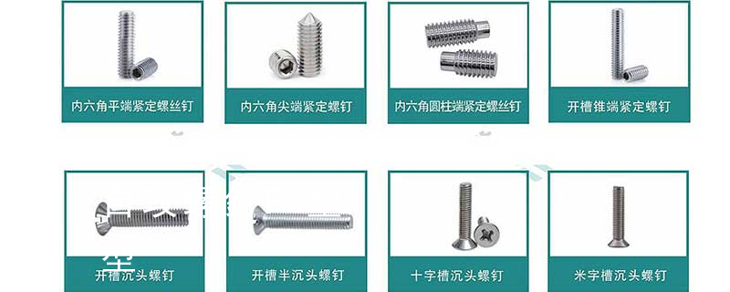 外扳擰:六角,六角法蘭面,六角凸緣,六角花形等;內(nèi)扳擰:一字槽,十字槽H型,十字槽Z型,十字槽F型,四方槽,復(fù)合槽,內(nèi)花鍵,內(nèi)六角花形,內(nèi)三角,內(nèi)六角,內(nèi)12角,離合器槽,六葉槽,高扭矩十字槽等。螺紋類型